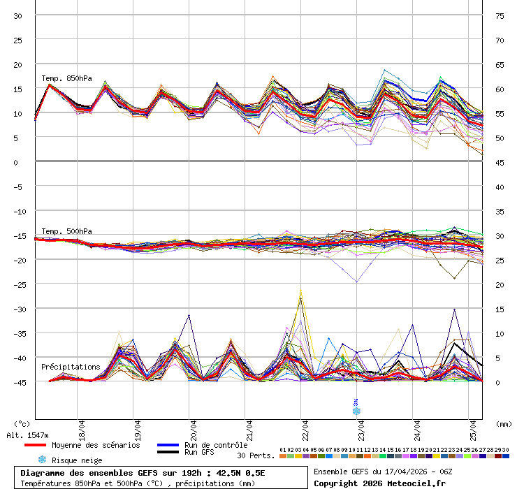 Donde, además de una estabilidad térmica digna de resaltar para estas fechas, y muy por encima, 7/9ºC (o más) de lo que toca, vemos como aparecen piquitos de precipitación todas las tardes. ¿Quiere eso decir que va a llover todos los días?, no, pero existen probabilidades para que haya tormentas desarrollándose en el Pirineo unos cuantos días.