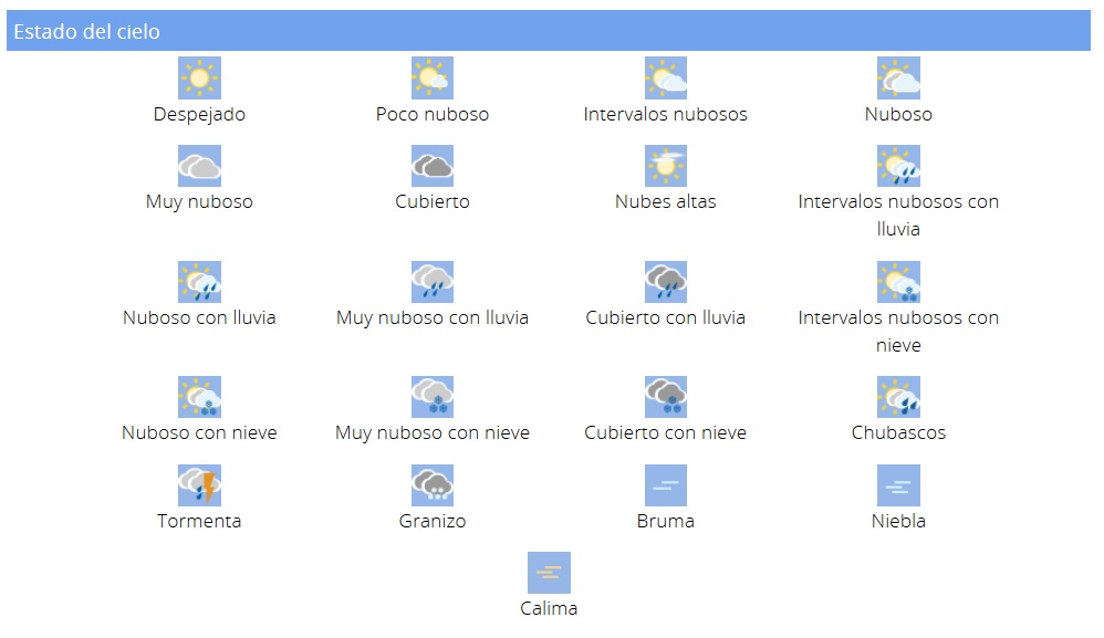 AEMet utiliza la siguiente simbología en sus previsiones: